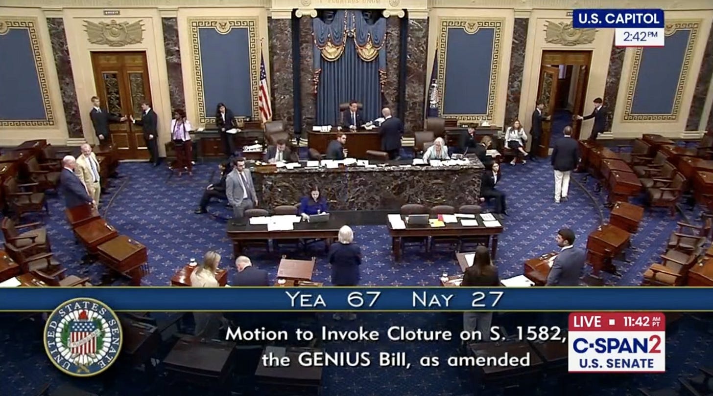 (NOTE: The United States Senate is about to pass a bill regulating stablecoins - the body’s first major crypto focused bill. If you’re reading this after June 17, 2025…it’s probably already happened. ALSO: I previously published a truncated version of this post on Twitter (X) if prefer a version that’s less than half as long)